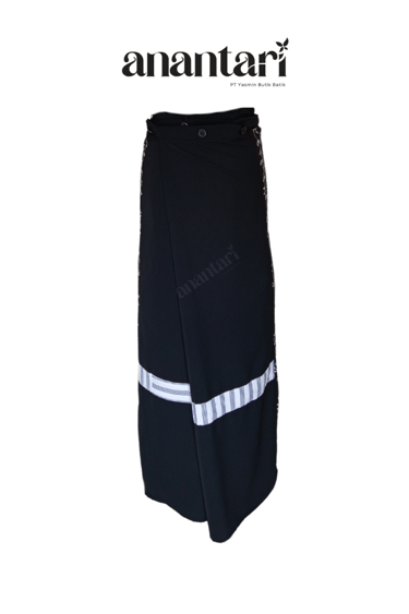 Aliva is a wrap-around skirt designed in the style of a sarong, featuring straps and buttons to adjust the waist size and customize the shape of the sarong as desired.
