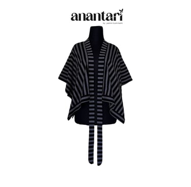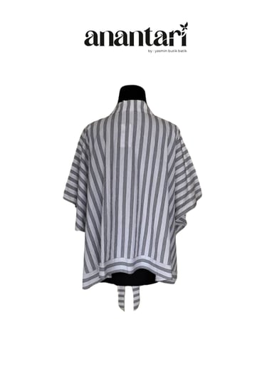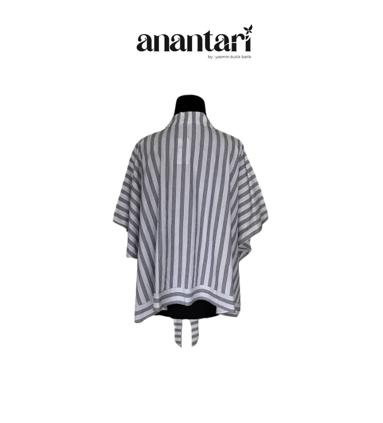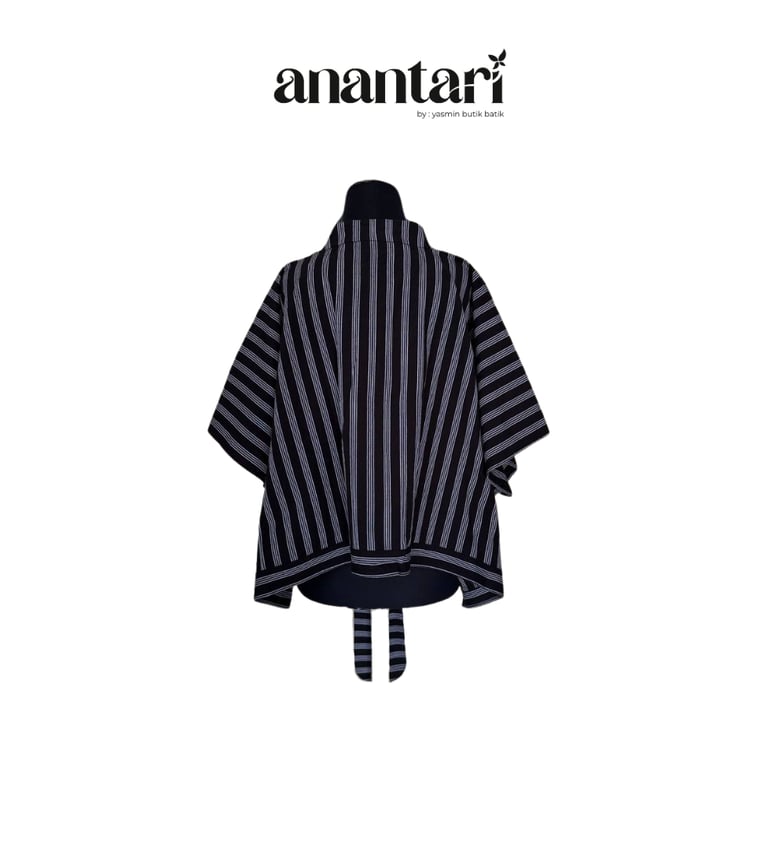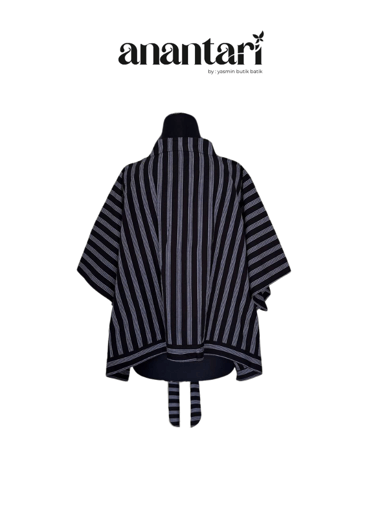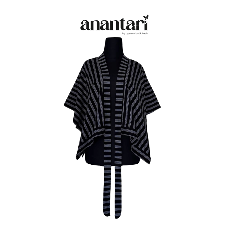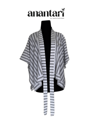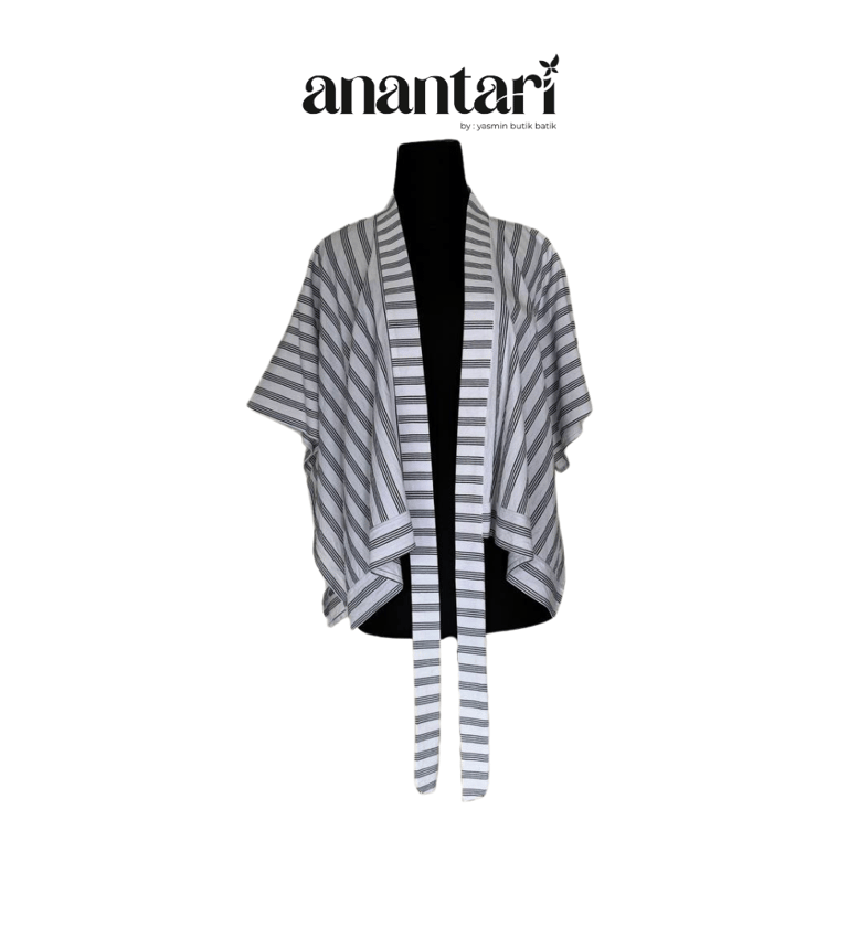 Kimi Outer Tenun Lurik is a semi-kimono style outerwear crafted from Tenun Lurik fabric. Kimi Outer is offered in two color variants: black and white. The straightforward and adaptable model is highly appropriate for formal or semi-formal environments. It features a rope that enhances its aesthetic appeal.